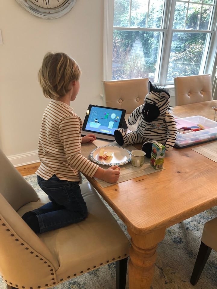As your child opens the Endless Alphabet App, they can swipe through up to 70 choices of words to explore. After the child chooses their target word, the app opens up to the word without the colored letters in place. The child is then required to match the colored letter with the outline of the word. As the child chooses each letter, they listen to the phonemic cue as it’s moving across the screen and then hear the name of the letter once it’s appropriately placed.