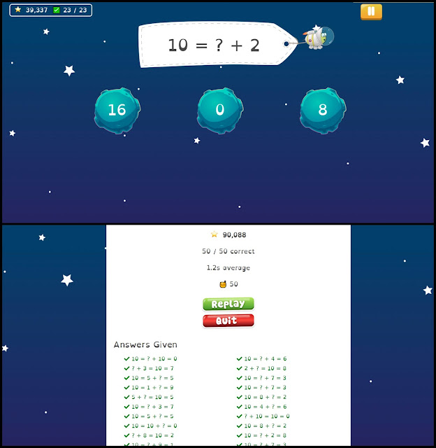 Math Shed is an online game that makes drilling facts fun. The student can choose addition and subtraction, number bonds (filling in the missing number from an addition or subtraction equation, i.e. 7 + __ = 10), multiplication and division, powers of 10, and more. Each category has various subtopics in it, such as adding up to 4 digits, numbers bonds up to 100, many combinations for multiplication and division, and powers of 10 up to 1,000. From there, each exercise has the option of easy, medium, or hard.