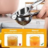 Material quality rasse hand manual juicer lemon squeezer made from the highestquality durable foodgrade stainless steel construction ensures a long life of use and without worrying food satety ergonomically designed lemon squeezer reduce the reaction force of the squeezer against the hand to give you a comfortable handle Save time and effort our juicer lemon squeezer easytouse easytoclean and easytostore lemon squeezer No more worrying about electricity or batteries Dont need to deal with hassle of peeling and clear seeds No more bulky hardtoclean juicers lemon squeezer crowding your home bar or kitchen