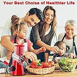 Homdox - Make cooking easierslice fruits or shred vegetables and cheese for delicious salads soups tacos pizzas desserts and much more Easy to useone button operation easy to use just press the button and slice shred or grate food right into a salad bowl onto a pizza or into soup then take your time to enjoy your delicious food Easy to cleaneasy cleanup base wipes clean everything else is dishwasher safe