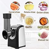 Multifunction food cutter electric slicer comes with 4 multipurpose interchangeable stainless steel cones instantly slice chop grate shred for making regular slices thick slices ripple cuts and shredsplus a handy funnel guide Great kitchen helper slice or shred vegetables fruits and cheese for delicious salads soups tacos pizzas desserts and much moreIt is also bpafree so you can be confident that youre receiving a safe and highquality appliance