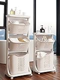 Easy to transferrolling cloth organizer equips with 4 heavy duty wheels they help with moving clothes from bedroom to laundry room and veranda without costing too much efforts Two of casters are designed with brakes that maintain laundry sorter cart staying stable Meanwhile the 3 individual bags is a nice helper of taking bags up moving upstairs or downstairsbring cloth to laundry room and directly pouring into wash machine