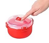 Microwave round container features a steam release vent in the lid for splatterfree cooking and reheating 26l rice cooker features pressure chamber plate to ensure rice stays moist and fluffy simply add rice and water close easylocking clips and cook