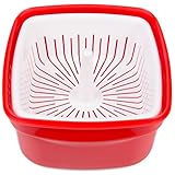 Fast easy our convenient microwave pot can be used to cook everything from fresh or frozen vegetables to your favorite macaroni Pouring spout 2 size drainage holes the spouted sides ensure controlled pouring and the lid has two different sizes on either side allowing you to choose best drainage option for the delicious items you have cooked