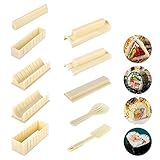 WeChip - Set of 10 sushi making toolsthis sushi kit come with 1 rice fork 1nonsticky spatula and 8sushi molds for making different shapes including triangles hearts classic round small squares rectangle animal shape semicirclewhich has everything you need to make sushi in just a couple of minutes Highly nutritious sushisushi in addition to the great flavors sushi can also introduce a lot of varying nutrition in your body Since it is made mainly of specially cooked rice you can get the essential carbohydrate and a negligible amount of fat from it Another regular ingredient nori seaweed is full of iodineNote using special sushi rice is easier to shape