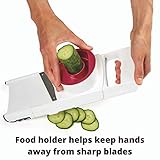 Zyliss - Material type plastic Nonslip grip on feet bowl rest and handle Collapsible design for compact storage and quick cleanup Smoothglide pusher has a unique wedge design to secure food in place without damaging Coarse and fine acidetched grating blades Includes 1mm and 3mm microserrated slicing blades that slice through tough and soft foods with ease angled for easy slicing