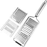 Ultra sharp blades this vegetable grater is equipped with japanese 420 stainless steel blades sharp enough to make every slicing and shredding done in a fast and effortless way Multifuntional grater this kitchen grater comes with 3 interchangeable drum blades including shredding blade fine shredding blade and slicing blade which help shred and slice potato carrot zucchini cucumber radish and so on