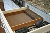Beautiful look waterresistant bamboo that wipes down easily with a damp cloth The in drawer knife organizer makes everything look beautiful and better organized It will match almost any decor Perfect for knife storage fits perfectly in almost all standard drawer sizes being 17 long 7 wide and 2 tall Easily store steak knives butcher knives and your knife sharpener