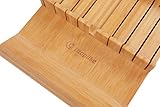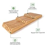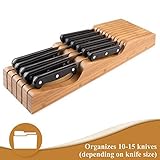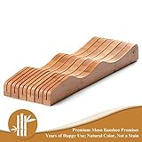 Perfect fit for your drawer slim body knife block being 17l x 74w x 157h perfectly fits almost standard drawer up to 15 slots save your kitchen drawer space for others Health and good craftmanship inheritance traditional handicraft each bamboo knife drawer organizer insert refine polished smooth without thorn non chemistry smell insure your health is our priority responsibility