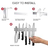 Modern Innovations - Easy installation this magnetic bar comes with mounting hardware and instructions so you can set up your magnetic knife strip and organize your kitchen right away This magnetic knife bar is also compatible with velcro or any kind of mounting tape Actual length 995 inches width 1 78 inches and thickness 58 of an inch to give you a little room to mount it Disclaimer this magnetic knife bar is strong enough to reset the magnetic mechanical shunt and pacemaker Powerful magnetic knife bar this modern magnetic knife bar is covered in an elegant satin finished high grade stainless steel that will compliment your kitchen décor