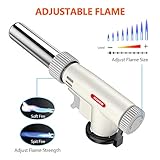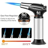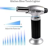 Adjustable butanetorch lightersthe flame adjusting regulator of kitchen blow torch allows you to choose the intensity of the flame you need up to 1300c 2500f Safety and durablesecurity lock prevents accidental ignition and a wide set base helps to prevent the culinary butane torch from tipping made with aluminum alloy body for long lasting use