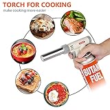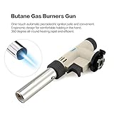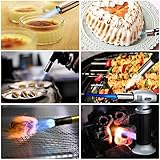 Versatile caramelizing food sugar atop creme brulee glazing a baked ham searing a steak roasting bell peppers melting cheese and toasting bread crumbs Useful for lighting your fireplace candles or cigars dabs for hobby soldering diy jewelry get rid of surface bubbles in your art resin welding for multiple camping applicationsetc Butane not included professional for cooking adopt super lightweight aluminum alloy shell covered with abs plastic handle and hightemperature resistant muzzle ensuring long lifespan coming with a silicone basting heat resistance up to 446⁰f 230⁰c and can be used in the kitchen the grill and on nonstick pans