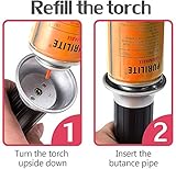 refillableeasy to operate refill the kitchen torch with any brand of butanebutane gas isnt included simply slide the security lock to open light up with piezo ignition technology It is a portablemini torch that you can take it for many outdoor activities like camping and bbq