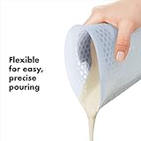 OXO - Honeycomb pattern dissipates heat and keeps hands protected Flat base provides stability in microwave and on countertops Flexible body and spout make it easy to pour ingredients into hardtoreach places such as the bowl of a stand mixer Entire cup made of durable bpafree silicone and is dishwasher safe Flexible silicone cup is microwave safe and ideal for melting butter chocolate and more