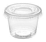 Comfy Package - Plastic jello shot cups condiment cups portion cups with lids made of durable crackresistant polypropylene The 1 oz Capacity is perfect for dressings condiments sauces food samples and more Overall dimensions top diameter 1 1116 height 1 516 bottom diameter 1 316 capacity 1 oz Stackable and additional separate bags for the containers and lids so to be easy to store and access