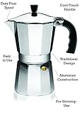Imusa - Ideal when making espresso Made with durable aluminum that keeps coffee warm 1cup capacity with cool touch handle and knob for easy handling Designed with a flip up top and side pour spout for easy serving Its small and portable design makes it perfect for single servings
