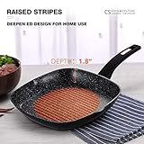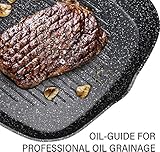 Nontoxic multilayer coating easy to clean the square grill pan contains excellent nonstick coating with chemical resistance and abrasion resistance Scratchresistant nonstick marble coating for easier healthier cooking with less oil fewer fumes and effortless cleaning up Nontoxic substances without any ptfe pfoa pfos pfas no lead and no cadmium Stainless steel bottom heat up quickly the superior heat conductivity of this steak pan results in less energy and time giving you efficient cooking experience The 3layer stainless steel bottom provides a stable even heat distribution perfectly prevent hot spots