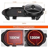 SEAAN - Separately temperature control hot pot and bbq grill have independent temperature control 5speed temperature adjustment Automatically adjust the temperature when too high Hot pot barbecue multi functional hot pot electric grill is suitable for indoor gathering use decent size hotpot 18 people can eat hotpot using this with no problem 2 in 1 function indoor electric grill suitable for steaks vegetables shellfish pasta etc hotpot with divider can make two taste of hot pot